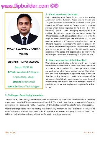 Stream: Mechanical done till date with mentor and team members. Wipro has