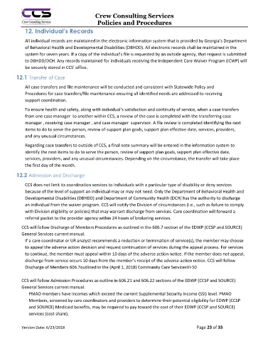 CCS will follow Admission Procedures as outline in 606.21 and 606.22 sections of the EDWP (CCSP and SOURCE)