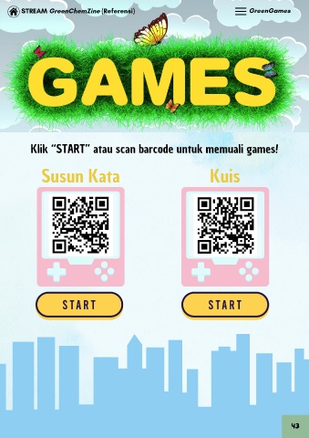 STREAM GreenChemZine (Referensi) GreenGames Klik “START” atau scan barcode untuk memuali games! Susun Kata Kuis 43