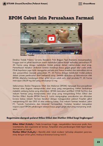 industri farmasi yang memproduksi obat sirop yang mengandung Etilen Glikol dan