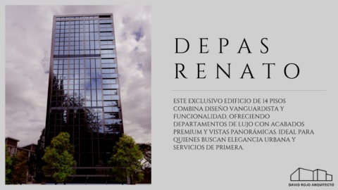 D E P A S R E N A T O ESTE EXCLUSIVO EDIFICIO DE 14 PISOS COMBINA DISEÑO VANGUARDISTA Y FUNCIONALIDAD, OFRECIENDO DEPARTAMENTOS DE LUJO CON ACABADOS PREMIUM Y VISTAS PANORÁMICAS. IDEAL PARA QUIENES BUSCAN ELEGANCIA URBANA Y SERVICIOS DE PRIMERA.