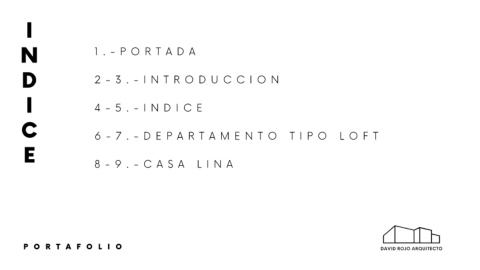 I N 1 . - P O R T A D A D 2 - 3 . - I N T R O D U C C I O N I 4 - 5 . - I N D I C E C 6 - 7 . - D E P A R T A M E N T O T I P O L O F T E 8 - 9 . - C A S A L I N A P O R T A F O L I O