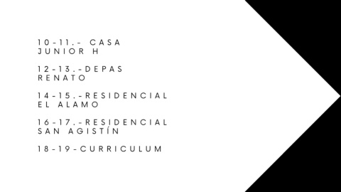 1 0 - 1 1 . - C A S A J U N I O R H 1 2 - 1 3 . - D E P A S R E N A T O 1 4 - 1 5 . - R E S I D E N C I A L E L A L A M O 1 6 - 1 7 . - R E S I D E N C I A L S A N A G I S T Í N 1 8 - 1 9 - C U R R I C U L U M