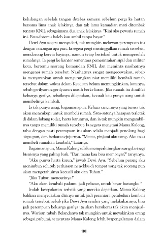 ”Aku punya harta karun,” jawab Dewi Ayu. ”Sebelum perang aku