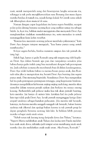bidah. Ia, kyai itu, bahkan mulai menggerutu dan menyuruh Dewi Ayu