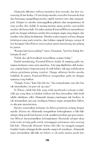 ”Kenapa kita harus pulang?” tanya Alamanda, ”kita bisa hidup ber-