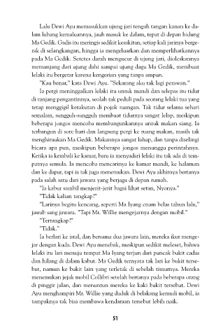 Ketika ia kembali ke kamar, baru ia me nyadari lelaki itu tak ada di tem-