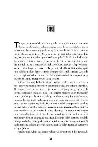 dan beras, dan juga tubuhnya. Ia tak pernah pergi lagi ke barak, tapi