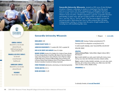 10 - 2020–2021 Wisconsin’s Private, Nonprofit Colleges & Universities Guide to Admissions & Financial Aid