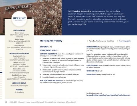 12 - 2020–2021 Wisconsin’s Private, Nonprofit Colleges & Universities Guide to Admissions & Financial Aid
