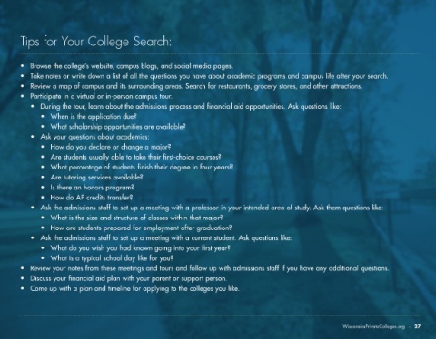 • Take notes or write down a list of all the questions you have about academic programs and campus life after your search.