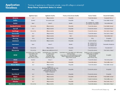 Application Opens Application Deadline Priority or Early Decision Deadline Decision Timeline Financial Aid Deadlines