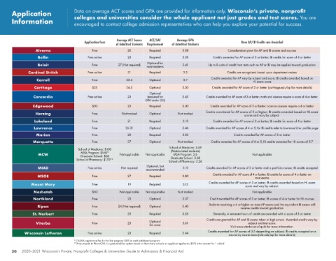 30 2020–2021 Wisconsin’s Private, Nonprofit Colleges & Universities Guide to Admissions & Financial Aid