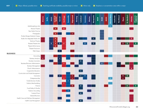 KEY Major offered, possible minor T Teaching certificate available, possible major or minor + Minor only e Emphasis or concentration area within a major