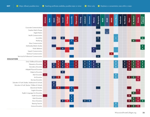 KEY Major offered, possible minor T Teaching certificate available, possible major or minor + Minor only e Emphasis or concentration area within a major