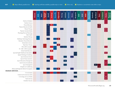 KEY Major offered, possible minor T Teaching certificate available, possible major or minor + Minor only e Emphasis or concentration area within a major