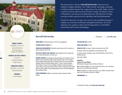 8 - 2020–2021 Wisconsin’s Private, Nonprofit Colleges & Universities Guide to Admissions & Financial Aid