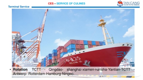 CES – SERVICE OF CULINES Terminal Service • Rotation: TCTT - Qingdao- shanghai-xiamen-nansha-Yantian-TCTT - Antwerp- Rotterdam-Hamburg-Ningbo.
