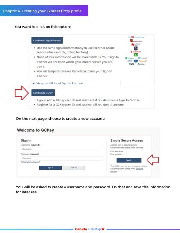 Chapter 4: Creating your Express Entry prof le You want to click on this option: On the next page, choose to create a new accou nt: You will be asked to create a username and passwor d. Do that and save this infor mation for later use.