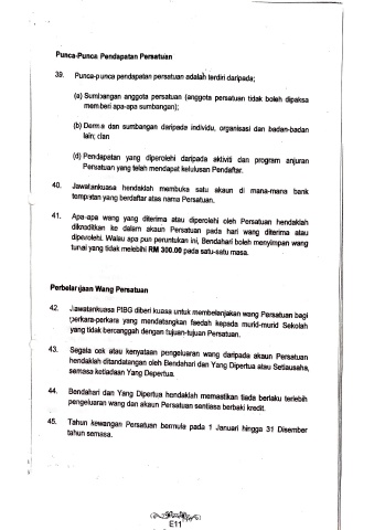 43. Segala eek atau kenyataan pungeluaran wang daripada akaun Persatuan