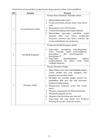 Jadual di bawah menunjukan jawatan beserta dengan peranan dalam sistem pendidikan.
