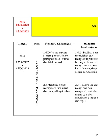 Minggu Tema Standard Kandungan Standard Objektif Pembelajaran Strategi/Kaedah/Tek Catatan