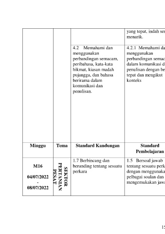 Minggu Tema Standard Kandungan Standard Objektif Pembelajaran Strategi/Kaedah/Tek Catatan