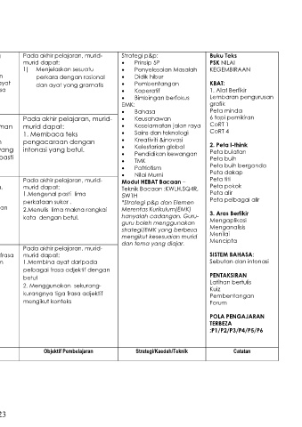 ayat ungkapan serta perkataan sukar . *Strategi p&p dan Elemen Peta pelbagai alir