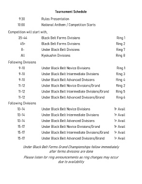 15-17 Under Black Belt Novice Divisions/Grand 1 Avail