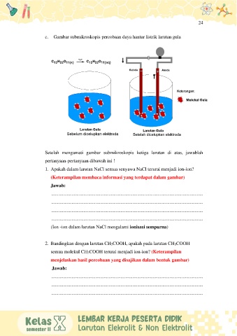 c. Gambar submikroskopis percobaan daya hantar listrik larutan gula