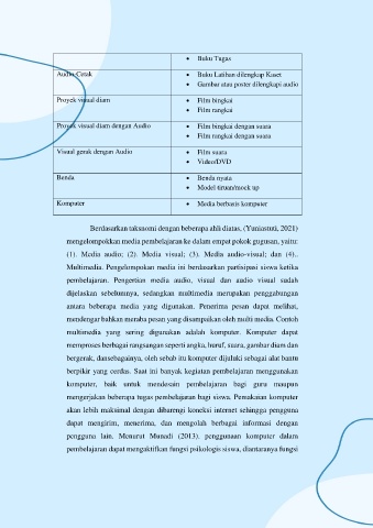 (1). Media audio; (2). Media visual; (3). Media audio-visual; dan (4)..