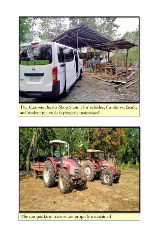 The Campus Repair Shop Station for vehicles, furnitures, faculty and student materials is properly maintained The campus farm tractors are properly maintained