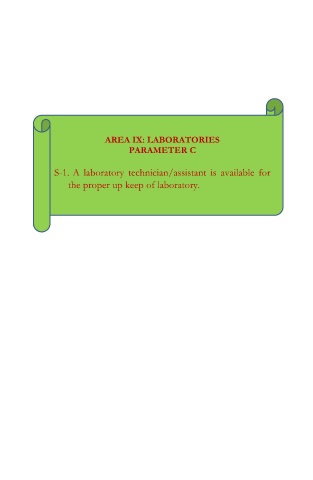 AREA IX: LABORATORIES PARAMETER C S-1. A laboratory technician/assistant is available for the proper up keep of laboratory.