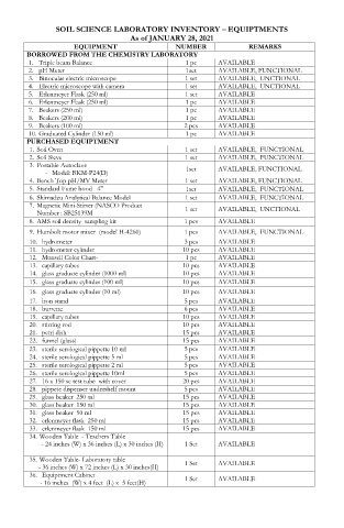 SOIL SCIENCE LABORATORY INVENTORY – EQUIPTMENTS