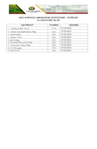 SOIL SCIENCE LABORATORY INVENTORY – SUPPLIES