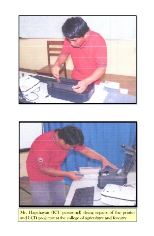 Mr. Hapchayan (ICT personnel) doing repairs of the printer and LCD projector at the college of agriculture and forestry