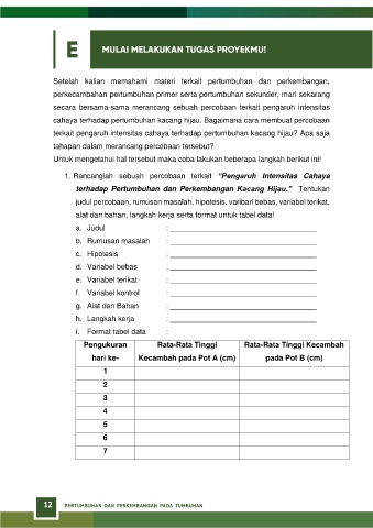 1. Rancanglah sebuah percobaan terkait “Pengaruh Intensitas Cahaya