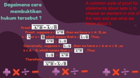 Proof: suppose x ∈ , then we have x ∉ A∩B, so