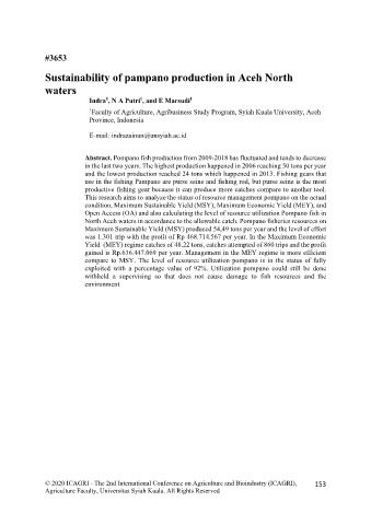 © 2020 ICAGRI - The 2nd International Conference on Agriculture and Bioindustry (ICAGRI), 153