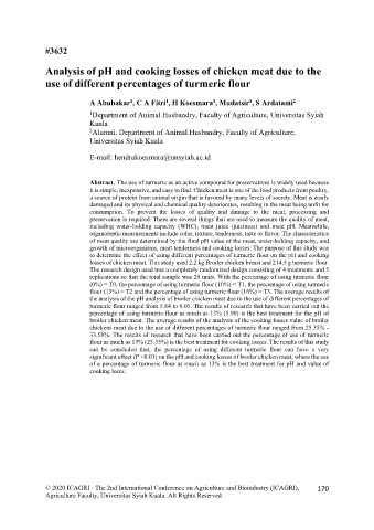 © 2020 ICAGRI - The 2nd International Conference on Agriculture and Bioindustry (ICAGRI), 170