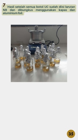 7 Hasil setelah semua botol UC sudah diisi larutan NB dan dibungkus menggunakan kapas dan aluminium foil. 35