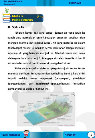menerus dari bumi ke atmosfer dan kembali ke Bumi. Siklus air ini