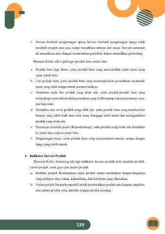 Menurut Kotler Amstrong ada tiga indikator inovasi produk yaitu kualitas produk,