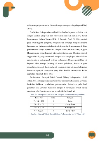 Tabel 2.7 Penetapan Rasio, Nilai dan Kategori Pendidikan Perkoperasiaan