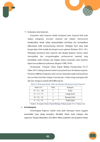 Tabel 2.8 Penetapan Rasio, Nilai dan Kategori Kerjasama Antar Koperasi