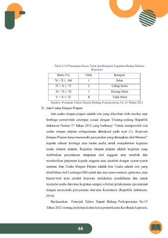Tabel 2.10 Penetapan Rasio, Nilai dan Kategori Legalitas Badan Hukum