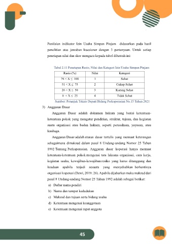 Tabel 2.11 Penetapan Rasio, Nilai dan Kategori Izin Usaha Simpan Pinjam