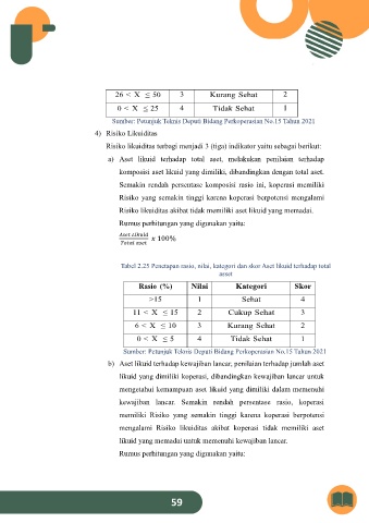 Tabel 2.25 Penetapan rasio, nilai, kategori dan skor Aset likuid terhadap total