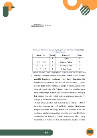 Tabel 2.26 Penetapan rasio, nilai, kategori dan skor Aset likuid terhadap