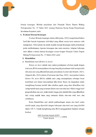rasio dalam evaluasi kinerja keuangan sesuai dengan Petunjuk Teknis Deputi